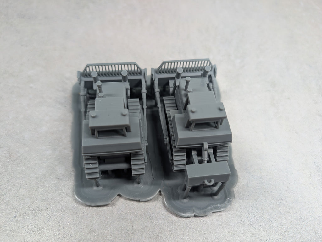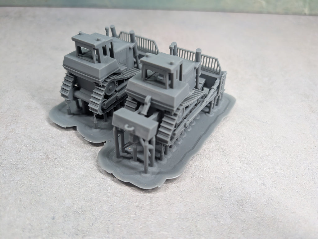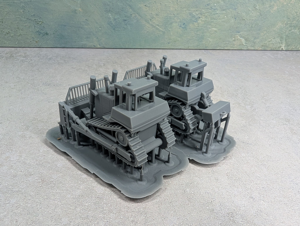 This is a set of (2) 3D printed high detailed resin dozer models, unpainted.