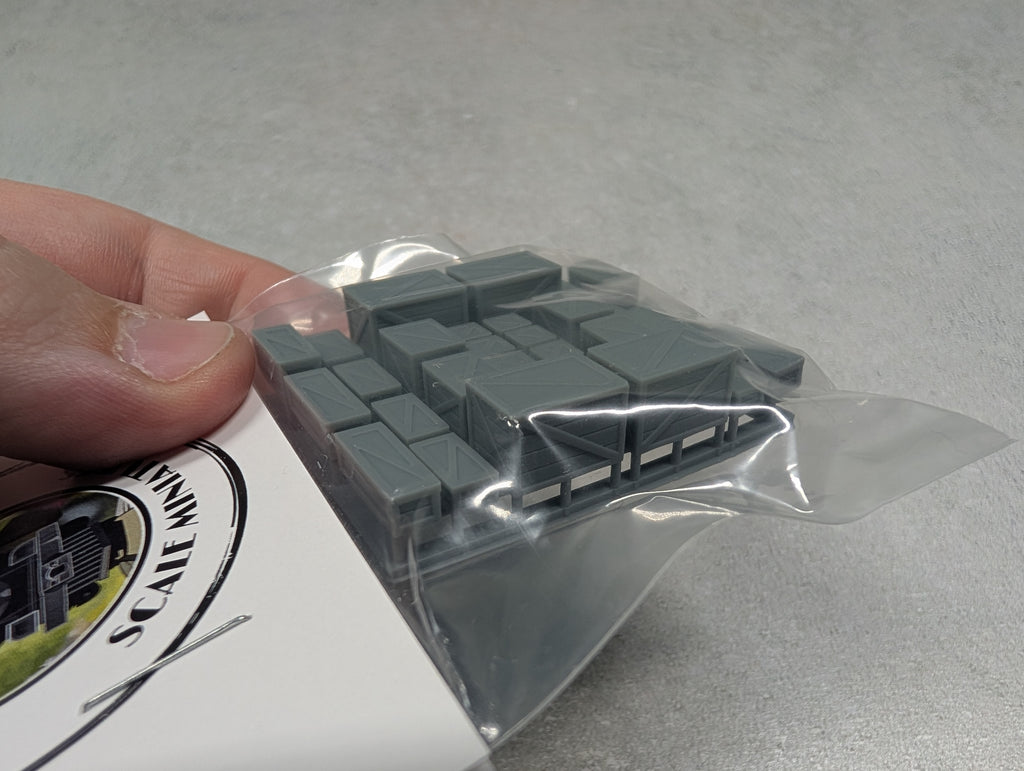 These N Scale Crates are 3D resin-printed, high-detail models. But as resin is delicate, if they do break, all you have to do is use thick super glue to put them together again – but I’m sure you already know that being an hobbyist like you are!