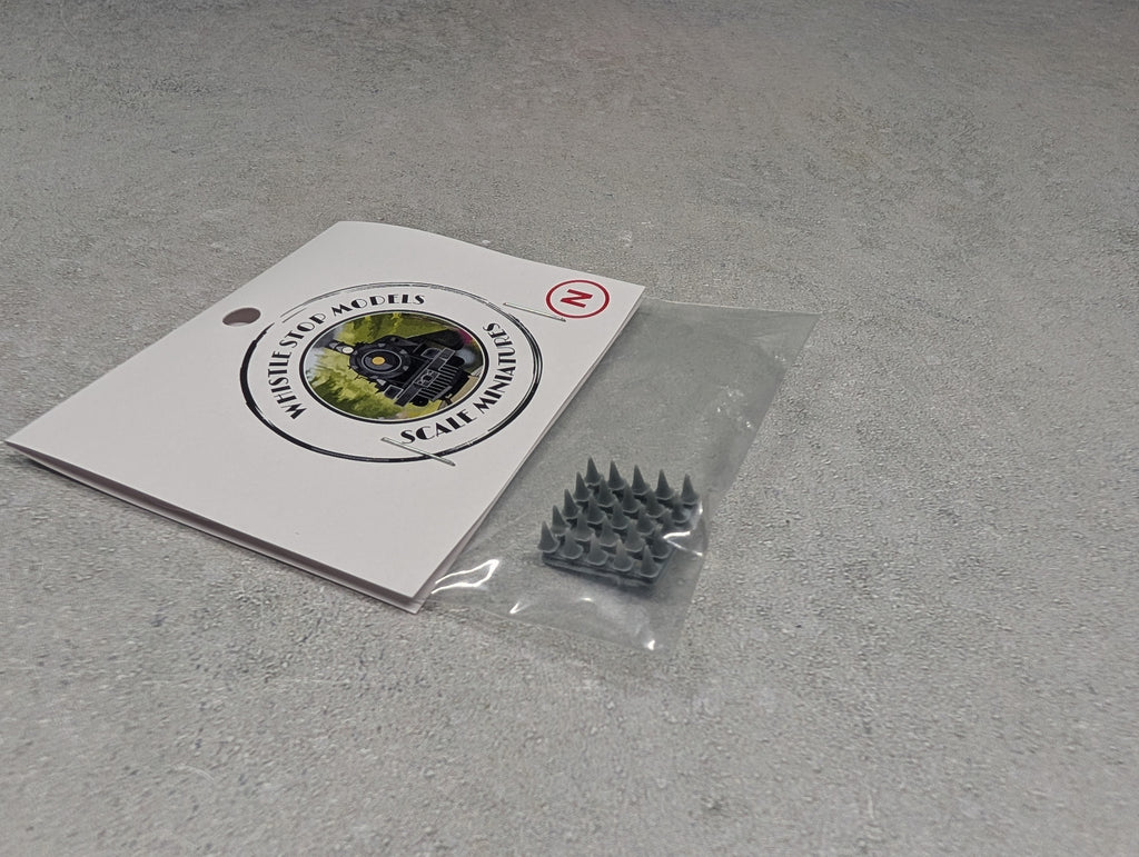 These 25 N-Scale Road Cones (N2209) are 3D resin printed, high detail models. But as resin is delicate, if they do break all you have to do is use thick super glue to put them together again – but I’m sure you already know that being an hobbiest like you are!