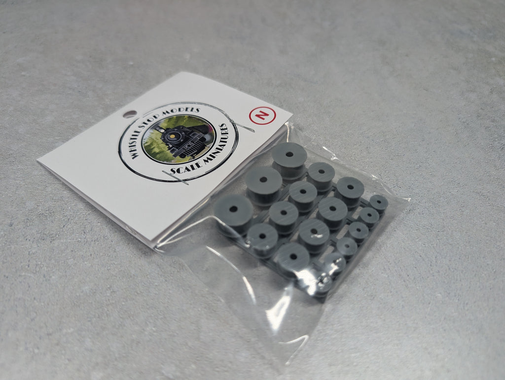 These N-Scale Small Cable Spools are 3D resin printed, high detail models. But as resin is delicate, if they do break all you have to do is use thick super glue to put them together again – but I’m sure you already know that being an hobbiest like you are!